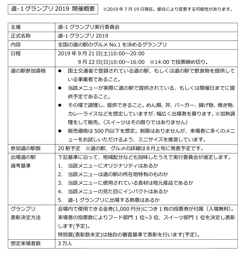 ※出場予定の道の駅、グルメの詳細は8月上旬に発表予定