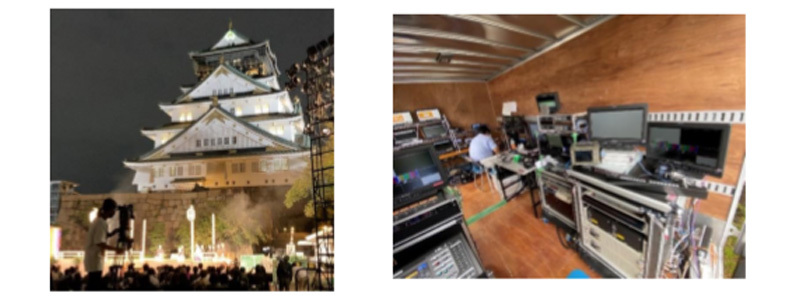 5回目となる今年、初めての試みとして有料オンライン配信を実施しました。映像制作と配信業務は読売テレビのグループ会社、株式会社ytv Nextryが担当し、カメラ4台とクレーンカメラを駆使して、様々な角度から舞台の模様を撮影し、野村萬斎が酒好きの船頭に扮し、息子の野村裕基演じる聟(むこ)とのコミカルなやりとりを繰り広げる狂言「船渡聟(ふなわたしむこ)」、大槻文藏と、息子の大槻裕一が出演し、竹生島に弁財天と龍神が現れ国土の安穏を誓う、能「竹生島」の2演目を、オンライン配信しました。