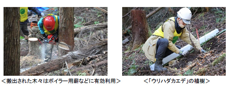 兵庫県丹波市は、日本海側に生息する動物や草木、また瀬戸内海側に生息する動物や草木の両方が共生する日本でも稀な地域です。そんな豊かな自然を保護するために、地元では2012年から様々な森林の整備に取り組んでいます。しかしながら、2014年8月に起こった豪雨による大規模な水害・土砂災害によって、森林の木々は流され、川の流れも変わり、地形をも変えてしまいました。今も復旧は道半ばで、災害木の搬出をはじめ更なる森林整備が必要となっています。