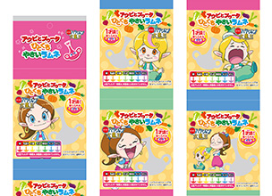 アクビちゃんをイメージしたピンク色の可愛らしいパッケージです。一口サイズのハート型でピーチ味とグレープ味のアソートグミ。