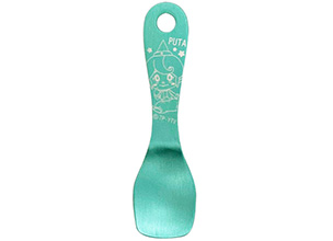 持つ手の体温で固いアイスクリームでも程よく溶かして食べることができるスプーンです。プゥータのデザインです。