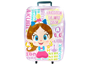 かわいいキャラクターと一緒にお出かけできるキャリーバッグです。たっぷり収納可能で持ち運びもラクラクです。アクビメインのデザインです。