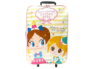 かわいいキャラクターと一緒にお出かけできるキャリーバッグです。たっぷり収納可能で持ち運びもラクラクです。アクビとプゥータのデザインです。