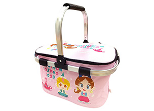 ピクニックなどにぴったりの、たっぷり入るかわいい保冷バスケットです。キャラクターがたくさんの総柄デザインです。