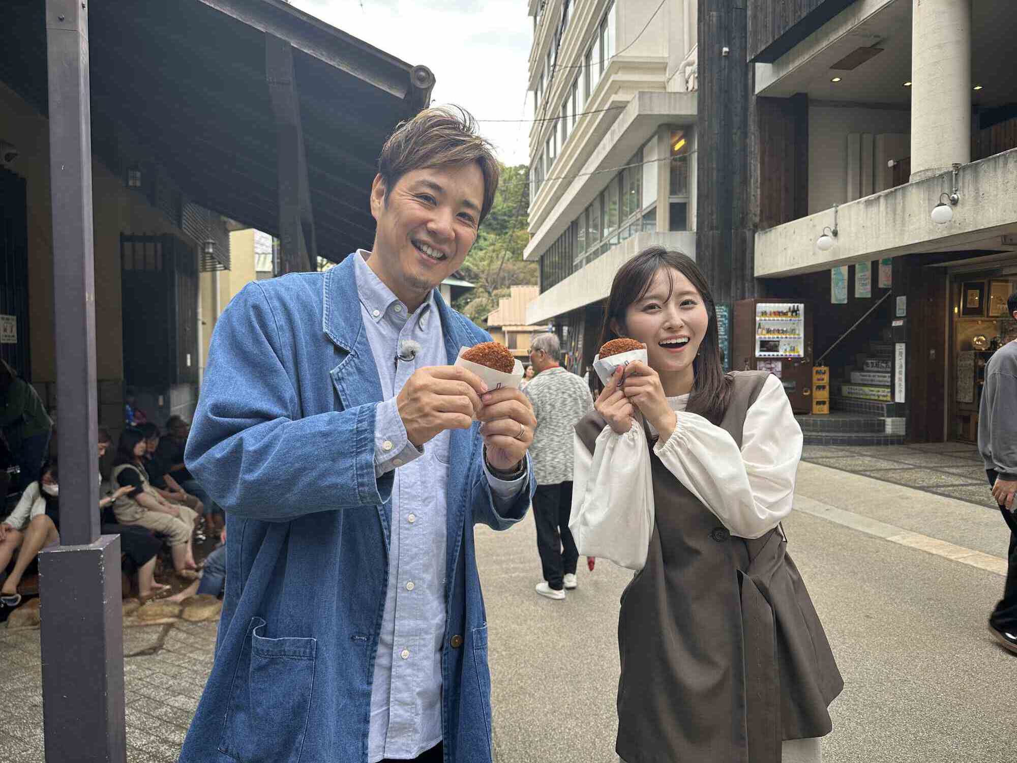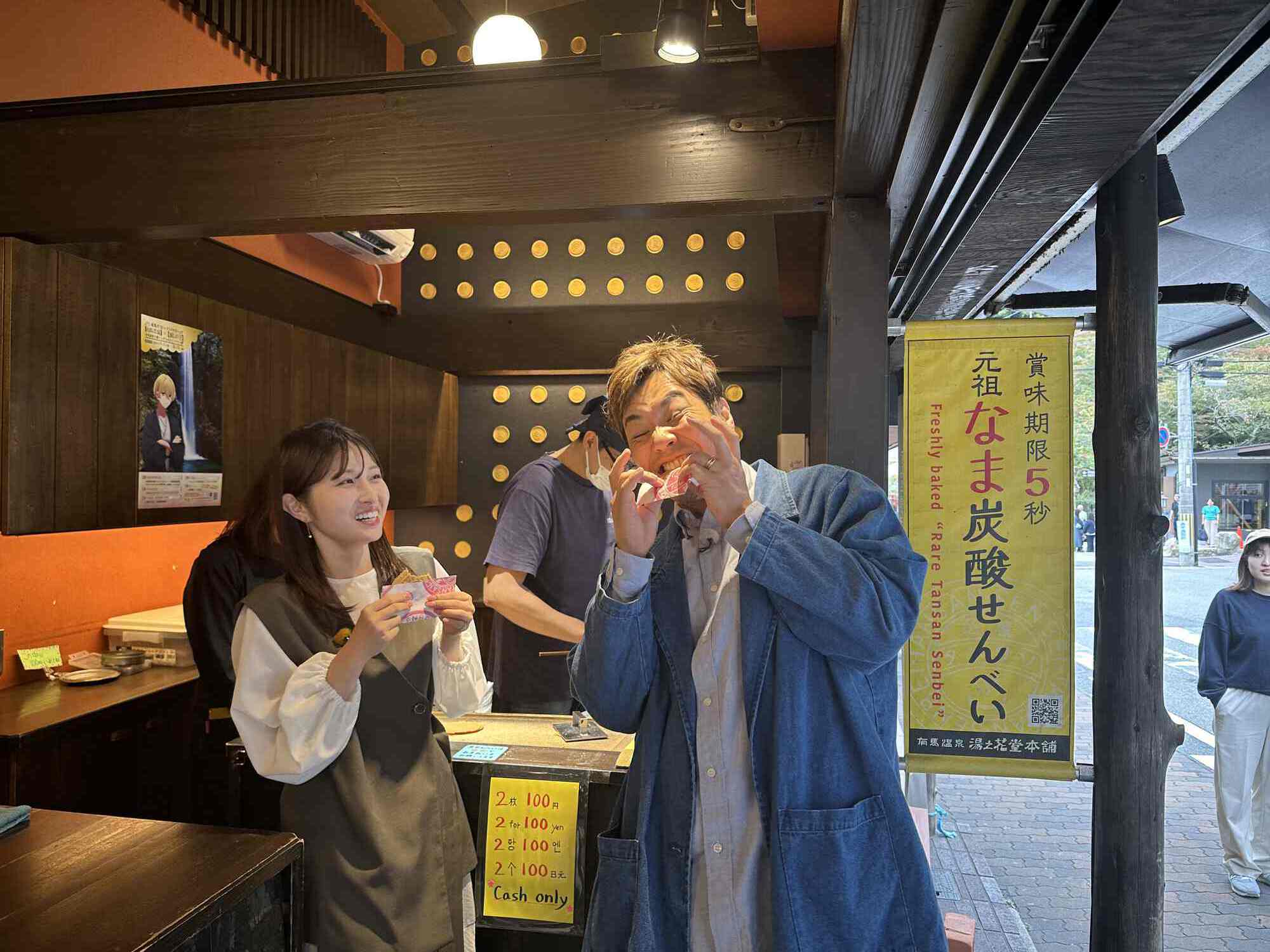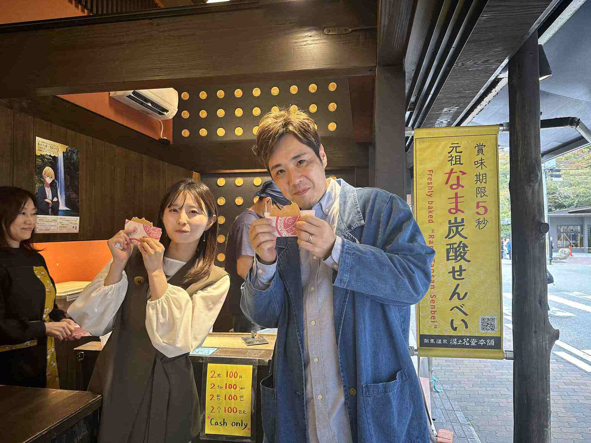 兵庫県・有馬温泉には食べ歩きできる〝ほかほかグルメ″がたくさんあるんです!神戸牛や黒毛和牛をゴロゴロ使った「ゴロッケ」に、1枚ずつ手焼きする、賞味期限わずか5秒のやわらか~い「なま炭酸せんべい」などなど。楽しいですよ!
