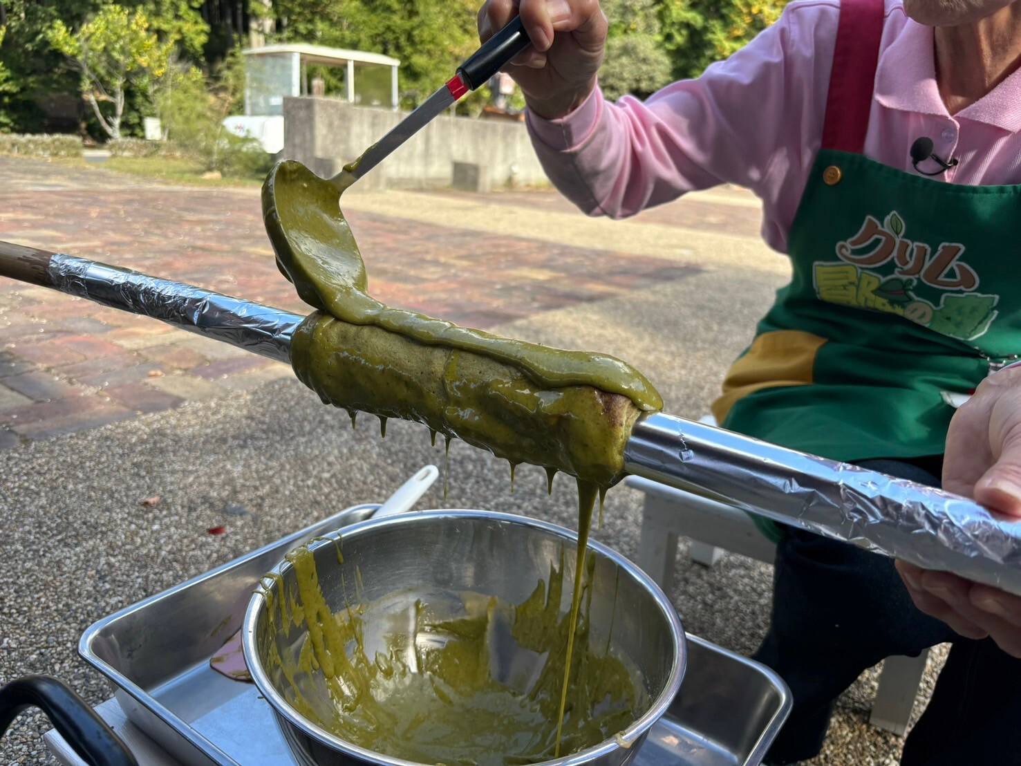 中でも週末&祝日限定の人気イベントが、BBQコンロの炭火で焼き上げる「バウムクーヘン作り体験」!