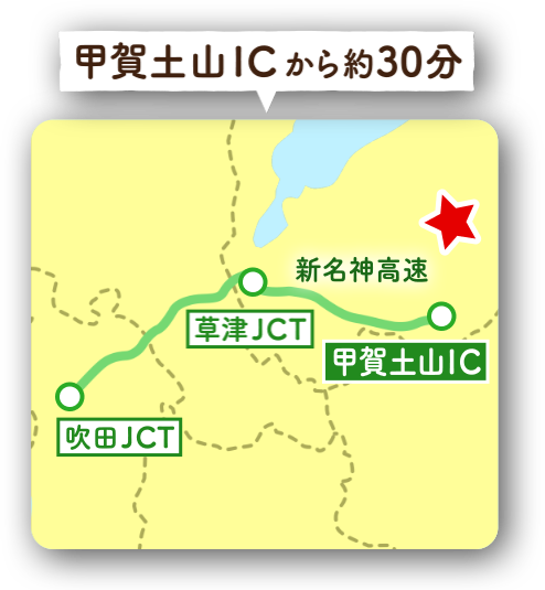 新名神高速道路、甲賀土山インターチェンジを降りておよそ30分