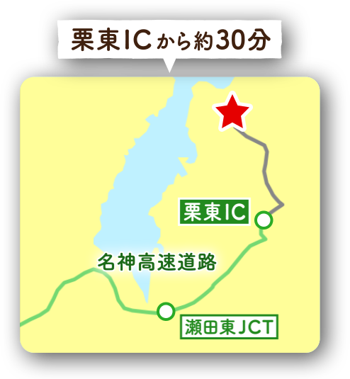名神高速道路 栗東ICからおよそ30分。