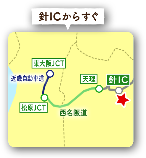 西名阪道路 天理料金所を通り 針IC降りてすぐ