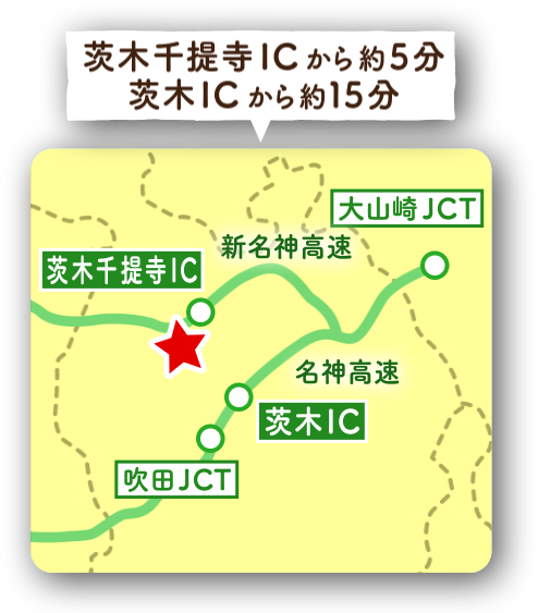 新名神高速道路、茨木千提寺インターチェンジから5分。