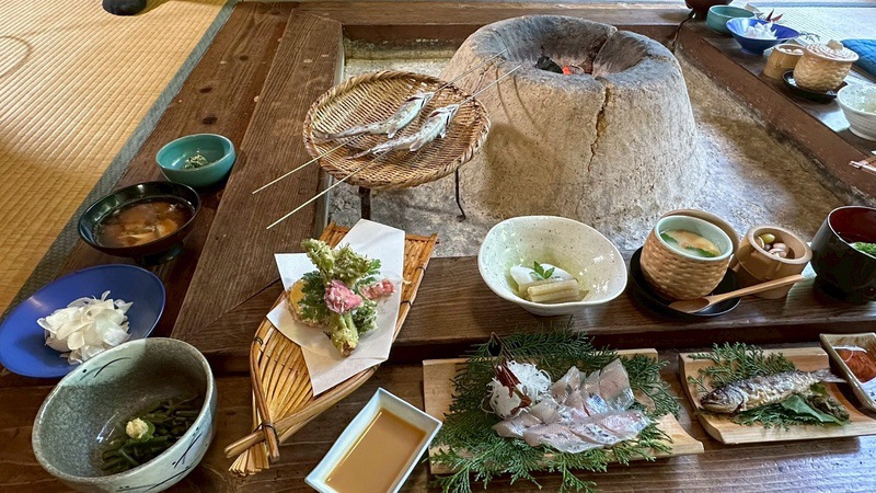 やまめ料理阿瀬は目の前の「阿瀬川」の水をくみ上げ1年以上かけ養殖したやまめを使用。人気メニュー壱のコースはやまめの塩焼き・やまめのお刺身・やまめの唐揚げの他、季節に合わせた旬の山菜など囲炉裏付きの個室で頂けます。