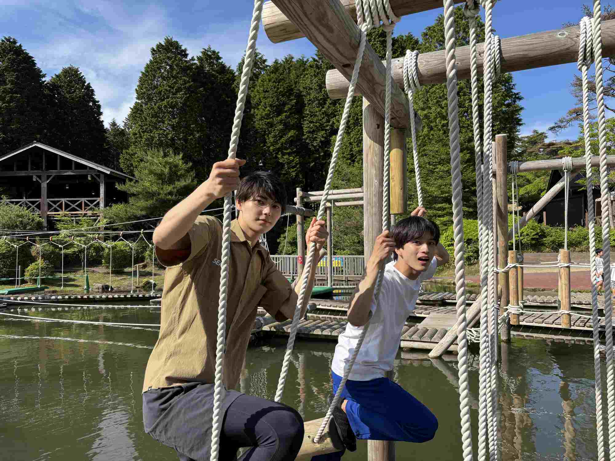 広大な敷地で150以上のアスレチックが体験できる「六甲山アスレチックパーク GREENIA」。今回、運動神経のいい2人に挑戦してもらうのは、夏にぴったり“水上アスレチック”!失敗=ずぶ濡れの水上アスレチック、2人は成功することはできるのか――?