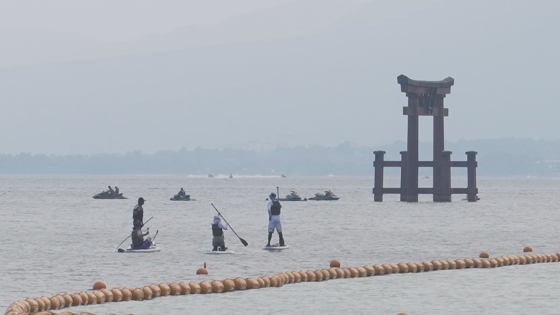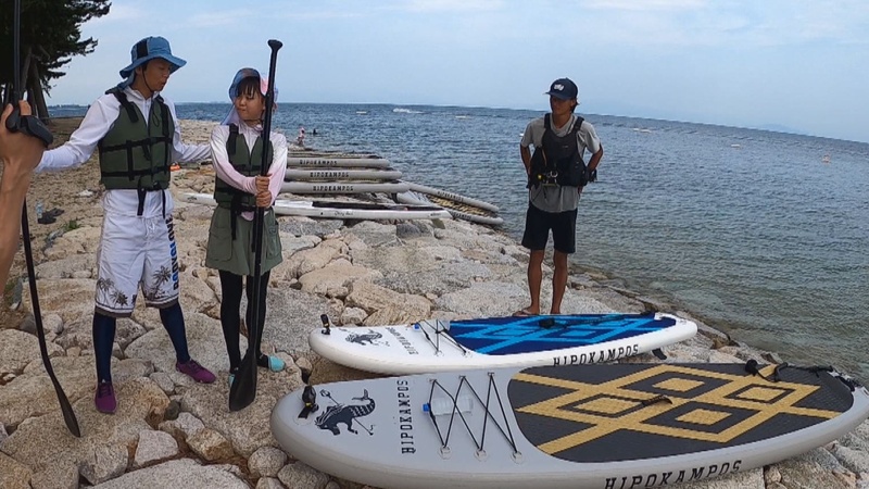 やってきたのは、夏のアクティビティが充実していると評判のスポット『白ひげビーチ』。蓬莱親子が挑戦するのが、琵琶湖上を優雅に散策できることで人気のSUPツアー。関西有数のパワースポットとして知られる『白鬚神社』の、湖上にある鳥居を間近で望めることが魅力!