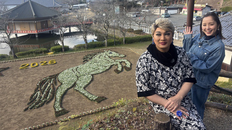 こちらでは約8000株のパンジーを使った干支を描くジャンボ花絵が圧巻!