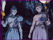 そして犬夜叉が鎖に封印されている門を鉄砕牙で壊そうとしたとき、突然"門を通りたいか、否か?"という声がふりそそぐ。門の側に立っていた石像の声だ。冥加の制止も聞かず、犬夜叉が"通る"と答えた瞬間、門番である石像の牛頭と馬頭がゆっくりと動き始めた。この門は死者しか通ることはできない門。そこで牛頭と馬頭は犬夜叉を死者に変えて通すため、犬夜叉の前に立ちふさがったのだ。