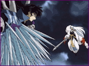 奈落が宝仙鬼の体から四魂のかけらを取ろうとした瞬間、凄まじい風の傷が奈落の伸びた触手を切り刻む。谷底から復活し、さっそうと現れた犬夜叉は、赤い鉄砕牙から渾身の力で風の傷を放つ。だが、奈落の結界は風の傷のエネルギーをそのまま犬夜叉に返した。それを待っていたとばかりに犬夜叉が繰り出した必殺の爆流破が奈落を襲う。爆流破に飲み込まれたと思われた奈落だったが、いつのまにか犬夜叉の背後に回り込むと、犬夜叉の腹を貫いた。