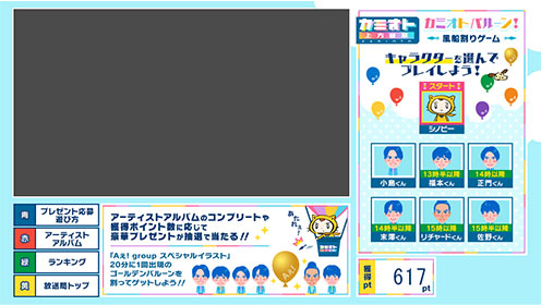 風船を割って、アーティストの写真を見たり、プレゼントに応募できるよ!