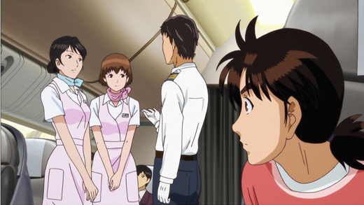 はじめは美雪、剣持警部と共に羽田行きJAM377便に搭乗する。この時、はじめは空港で迷子になり、サングラスをかけ、ヒゲを蓄えた機長の志田智明に旅客機まで案内してもらう。はじめたちはエコノミークラスを予約するがダブルブッキングが判明し、はじめと美雪はスーパーシートに代わりの席を用意してもらう。スーパーシートには明智警視が偶然乗り合わせていた。離陸後、志田の機内アナウンスに明智が反応。明智は研修で米・ロスに滞在した時に志田と知り合ったという。