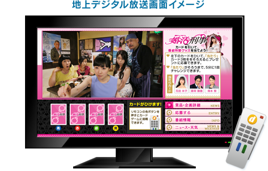 データ放送にて、当たりカードを3枚そろえるとプレゼントにご応募いただけます。