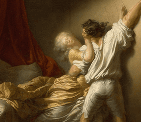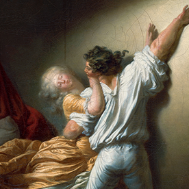 官能的な愛の戯れの賛美なのか、道徳的警告なのか、あるいはその両方なのか。一義的には解釈できないこの豊かな曖昧さこそ、《かんぬき》の最大の魅力といえます。悦楽が一瞬にして暴力に転じかねない性愛の繊細さ、複雑さを、フラゴナールはみごとに描き切っているのです。 -