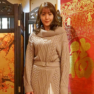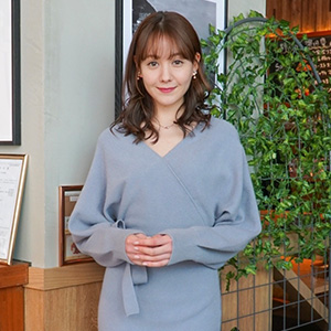 - カシュクールデザインのニットワンピで上品に!