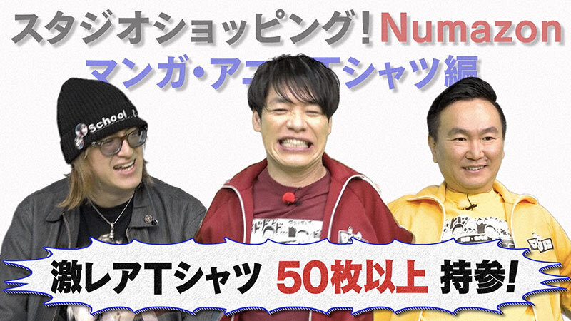 「スタジオショッピング!Numazonマンガ・アニメTシャツ編」を放送する。2人が通う古着&アニメTシャツ専門店が“本気の品揃え”でスタジオに出現!『ジョジョの奇妙な冒険』『進撃の巨人』ら人気作激レアヴィンテージT、数十万円超高額お宝Tがズラリ!川島・山内が爆買いモードに!?