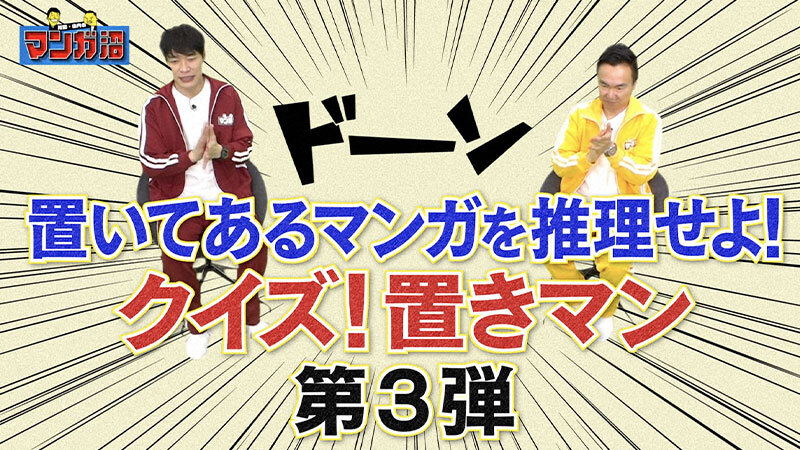 読売テレビ 7月22日(土) 深夜1時28分 日本テレビ 7月27日(木) 深夜3時29分 「クイズ!置きマン」第3弾 さまざまな場所の本棚に置いてあるマンガを推理する「クイズ!置きマン」第3弾を放送。かまいたちがロケで訪れた「純喫茶」、個性的キャラの番台がいる「銭湯」、山内が頼るマンガ芸人「クロスバー直撃・前野家」から出題!超マニアックな前野家の置きマンに川島・山内大パニック!さらには名物ヒントアイテム「シャイニング」がまさかの進化!スタジオで繰り広げられる生ヒントに川島・山内も悪戦苦闘!?