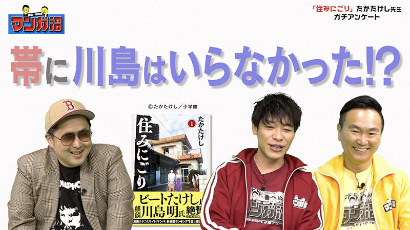読売テレビ 2月24日(土) 深夜1時28分 日本テレビ 2月29日(木) 深夜3時29分 「マンガ家ガチアンケート」 川島激推しの不穏すぎるホームドラマ『住みにごり』作者・たかたけし先生がテレビ初登場!2週にわたり「マンガ家ガチアンケート」で深掘りする。ビートたけしと川島の名前が並んだ伝説の帯コメント逸話&激ヤバストーリー&登場キャラ秘話公開!川島実家の秘密暴露で山内絶句! ゲスト・・・ たかたけし