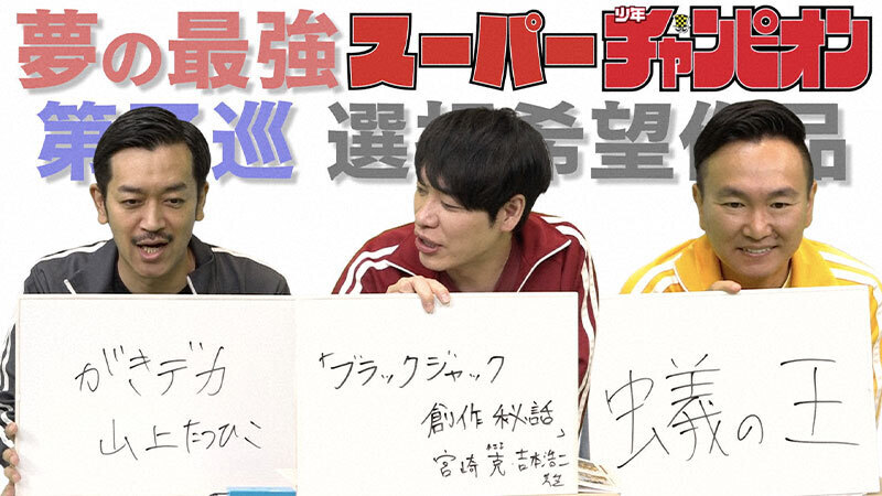 読売テレビ 7月29日(月) 深夜1時9分 日本テレビ 8月1日(木) 深夜2時45分 「夢の最強ラインナップを考えよう!スーパーチャンピオン編」後編 ムーディ勝山をゲストに迎えて「夢の最強ラインナップを考えよう!スーパーチャンピオン編」後編を放送する。週刊・月刊・別冊3つのチャンピオン豪華合体版!自分のチャンピオンに掲載したい7作品をドラフト形式で選抜!攻めに攻めた各チャンピオンの作品・掲載順・表紙を大発表! ゲスト・・・ ムーディ勝山