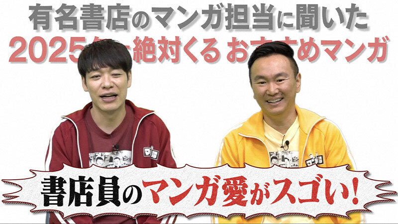 読売テレビ 1月20日(月) 深夜0時59分 日本テレビ 1月23日(木) 深夜2時35分 有名書店のマンガ担当に聞いた2025年に絶対くるおすすめマンガ 人気企画「有名書店のマンガ担当に聞いた2025年に絶対くるおすすめマンガ」を放送する。SHIBUYA TSUTAYA、ヴィレッジヴァンガード下北沢店、紀伊國屋書店新宿本店のマンガ愛が強いコミック担当が登場!今年イチオシの注目マンガ&川島&山内へのおすすめ作を厳選紹介!