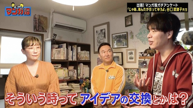 読売テレビ 7月14日(月) 深夜0時59分 日本テレビ 7月17日(木) 深夜2時35分 「出張!マンガ家ガチアンケート」第3弾 ① ロケ企画「出張!マンガ家ガチアンケート」第3弾を2週連続放送。川島おすすめマンガ『じゃあ、あんたが作ってみろよ』『まめとむぎ』連載中、谷口菜津子先生の仕事場兼自宅にお邪魔!テレビ初!『ひらやすみ』作者の夫・真造圭伍先生とのマンガ家夫婦インタビューで意外な事実が!? ゲスト・・・ 谷口菜津子