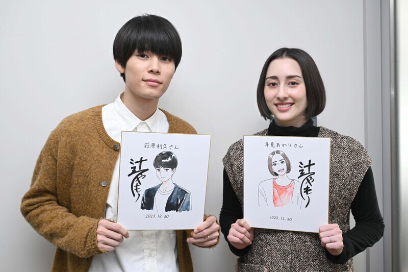 さらに、辻やもり氏が描く、萩原利久と早見あかりのイラストが、後日サプライズで現場に届けられた。2人は驚きの表情を見せながらも、満面の笑みで受け取り、