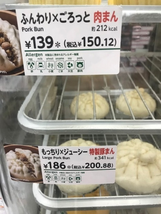 50メートルほど離れていますが、隣のビルの3階にも少し大きなコンビニがあります。行ってみたら・・・ありました!ようやく「肉まん」が!税込み140円。しかも安い!