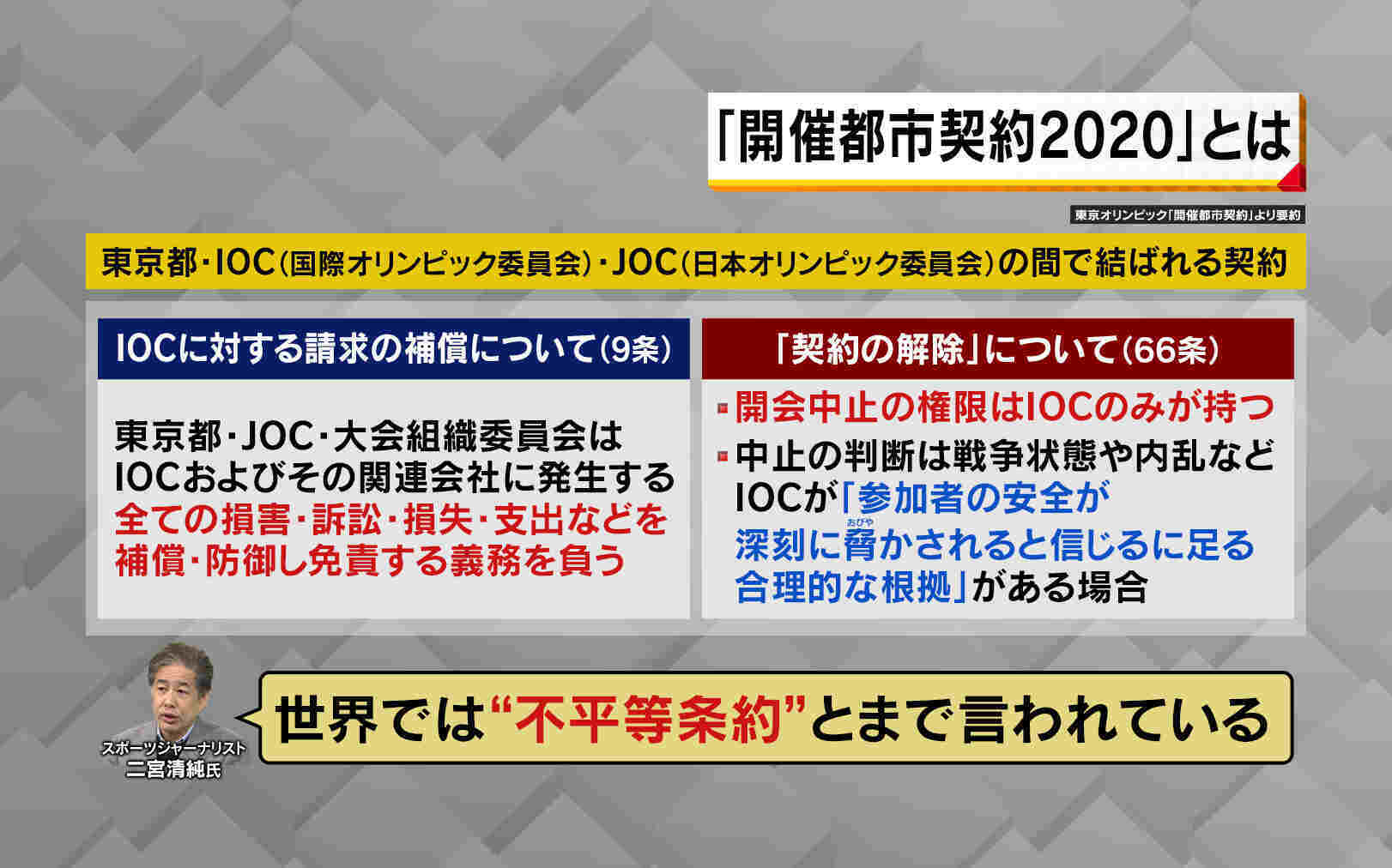 不平等な開催都市契約「IOCも謙虚な姿勢必要」