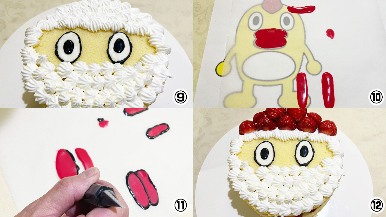 ⑥絞り袋に入れた生クリームで髭を作る