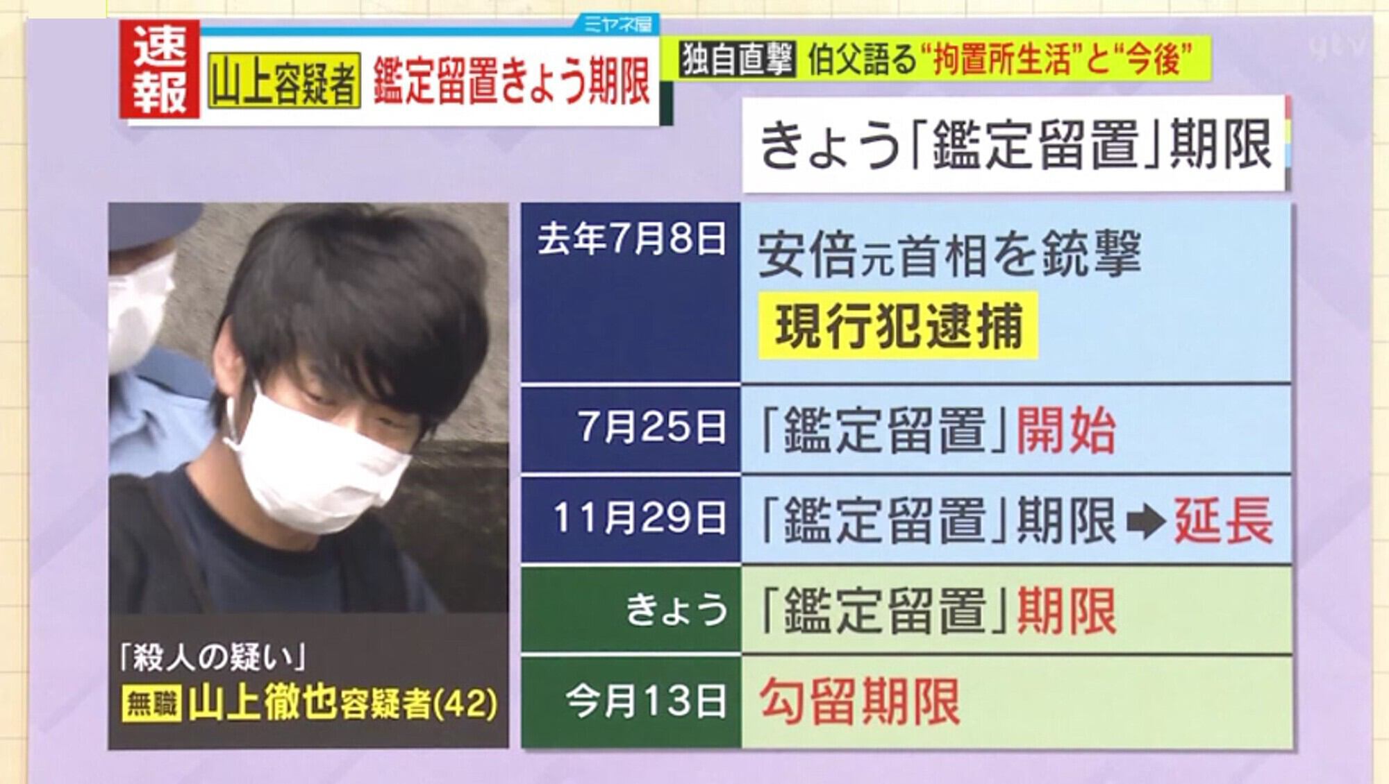 安倍元首相が銃撃されてから半年。逮捕された山上徹也容疑者(42)の鑑定留置が、1月10日に期限を迎えました。奈良地検は「刑事責任能力があった」と判断し、殺人罪などで起訴する方針です。そんな山上容疑者の伯父を、読売テレビは半年にわたって取材。伯父が語った山上容疑者の拘置所での様子と共に、山上容疑者の今と今後について、“統一教会”を20年にわたり取材してきた、ジャーナリストの鈴木エイト氏が解説します。
