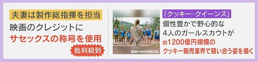 映画は『クッキー・クイーンズ』という題名で、個性豊かで野心的な4人のガールスカウトが、1200億円規模のクッキー販売業界で競い合う姿を描いています。しかし、夫妻はこの映画の製作総指揮を担当していますが、クレジットに『サセックス』の称号を使用したことで、またも批判が殺到しているということです。
