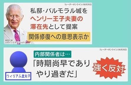 一方、1月26日の『レーダーオンライン』は、チャールズ国王が、私邸・バルモラル城を、ヘンリー王子夫妻の滞在先に提案していて、関係修復への意思表示ではないかと報道しています。しかし、内部関係者によると、ウィリアム皇太子が「時期尚早であり、やり過ぎだ」と強く反対しているということです。