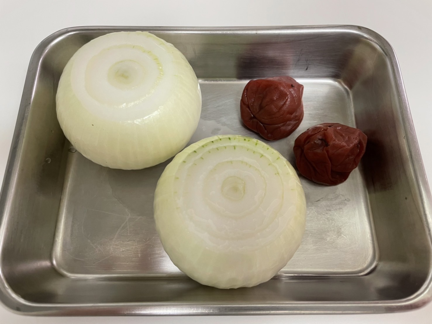 ・ 小ぶりの新玉ねぎ 2個・ 梅干し 大2個・ 出汁 600cc・ みりん 10cc