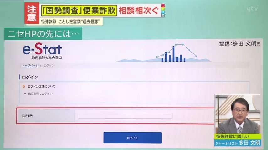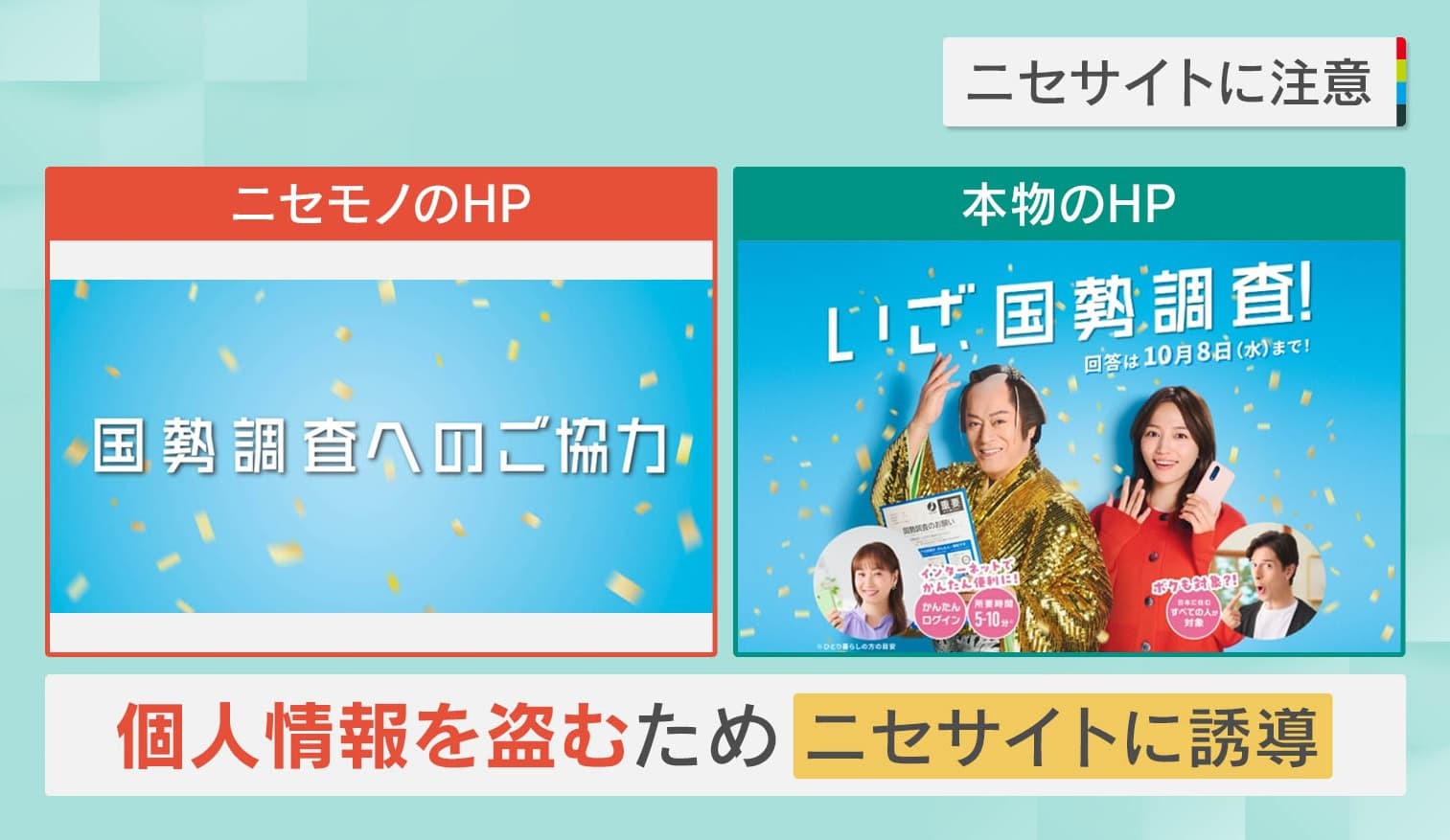 「そうですね。時代によって国勢調査に便乗する詐欺の手口は少しずつ変わっていて、二十数年前は訪問をして『国勢調査には手数料がかかる』と言って、お金をだまし取っていく事例がありました。今はフィッシング詐欺メール、いわゆるニセのメールがたくさん来て、その中に紛れ込ませて個人情報を取ろうとするケースがあるので注意したほうがいいです」