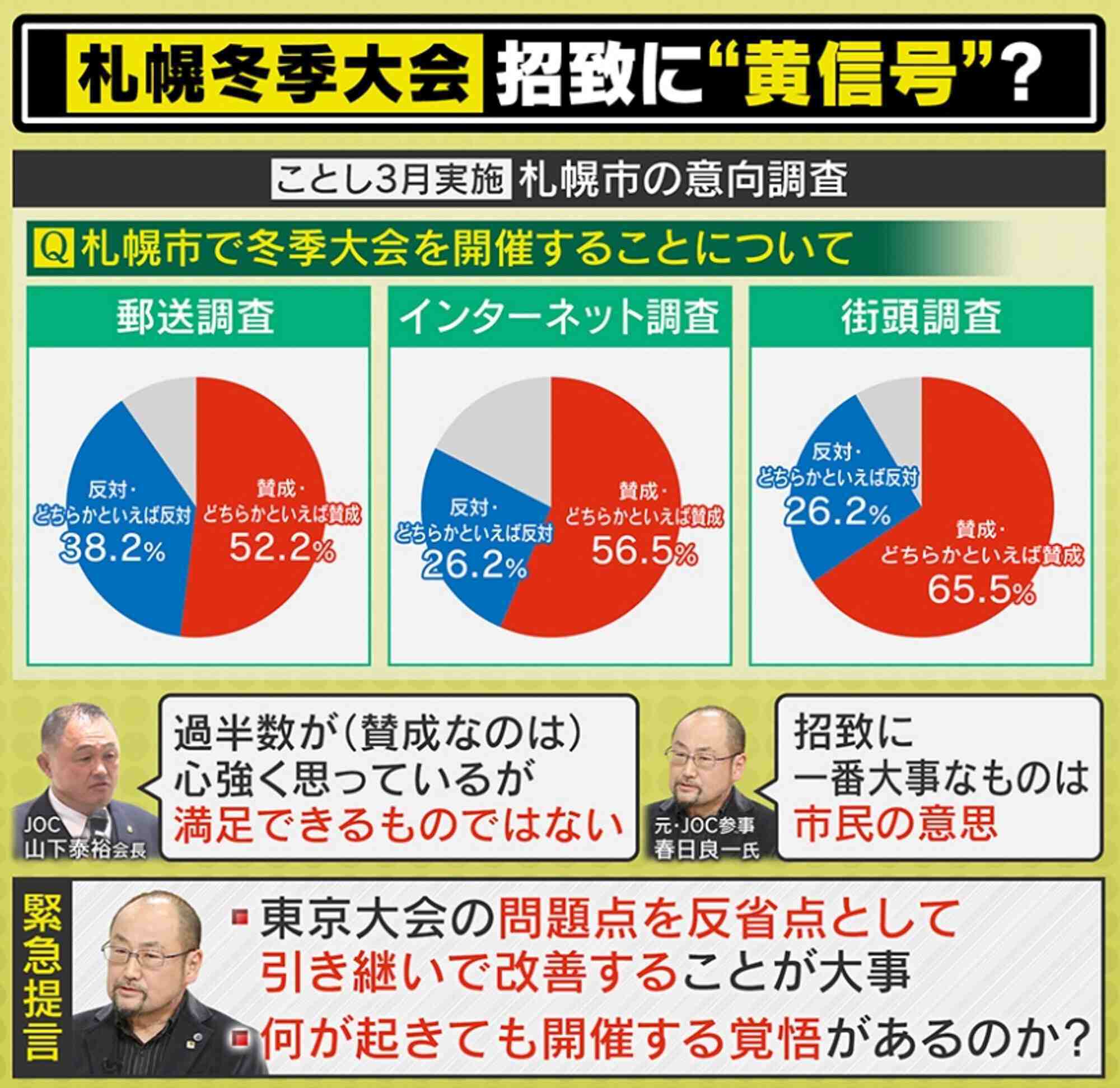 「前提として札幌市民が、冬季大会を迎え入れたいという気持ちがないと難しいです。東京大会でも、直前になって反対派の人が増え、スポンサーがCMを流せないということがありました。今も東京大会のことに触れにくい雰囲気が残るなかで、札幌大会は応援してもらえる大会にならないと、スポンサーが付かないということを考えておかないといけません」