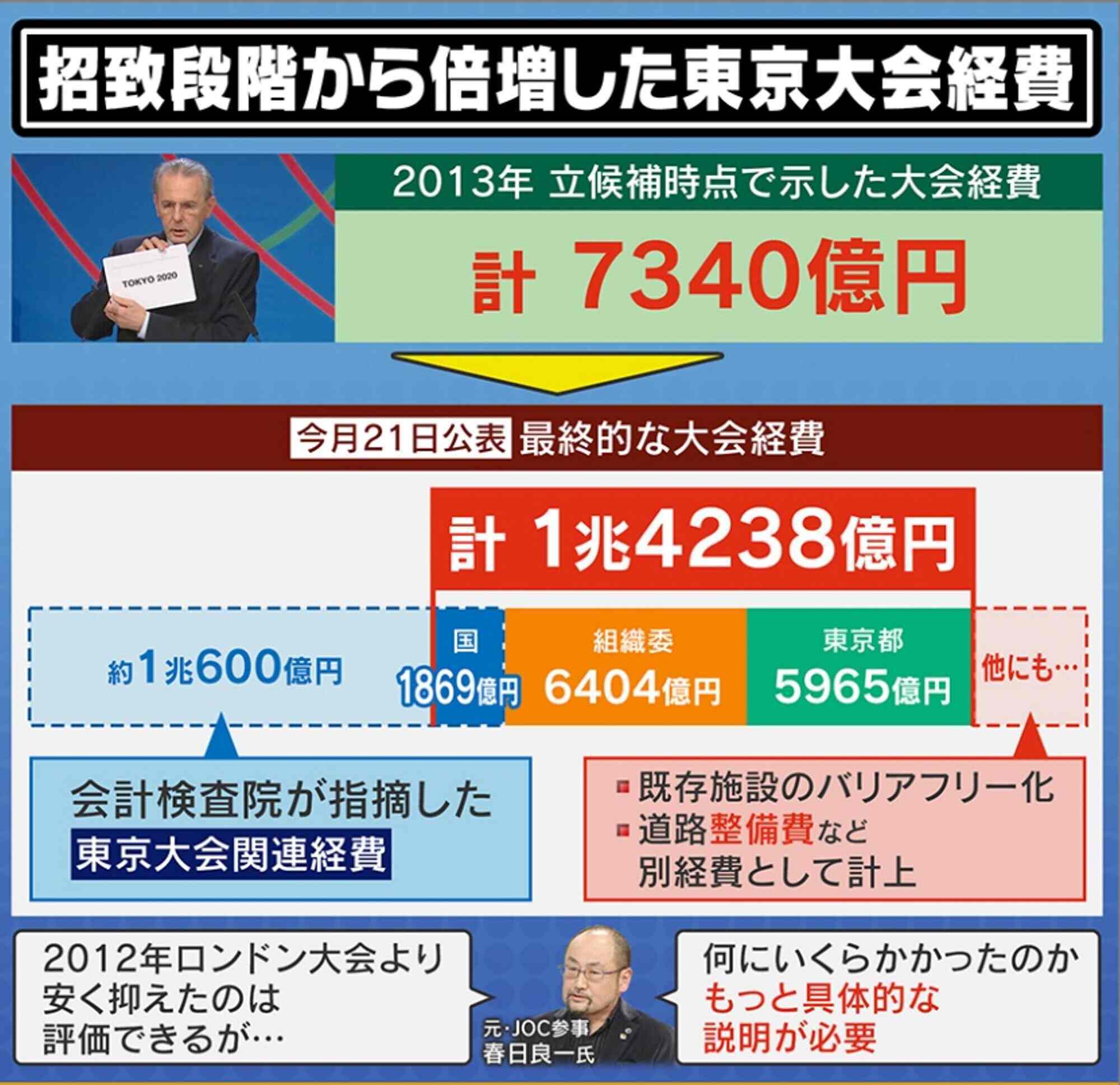Q. 当初7340億円としていた大会経費は最終的にその倍の1兆4238億円になっていますが、