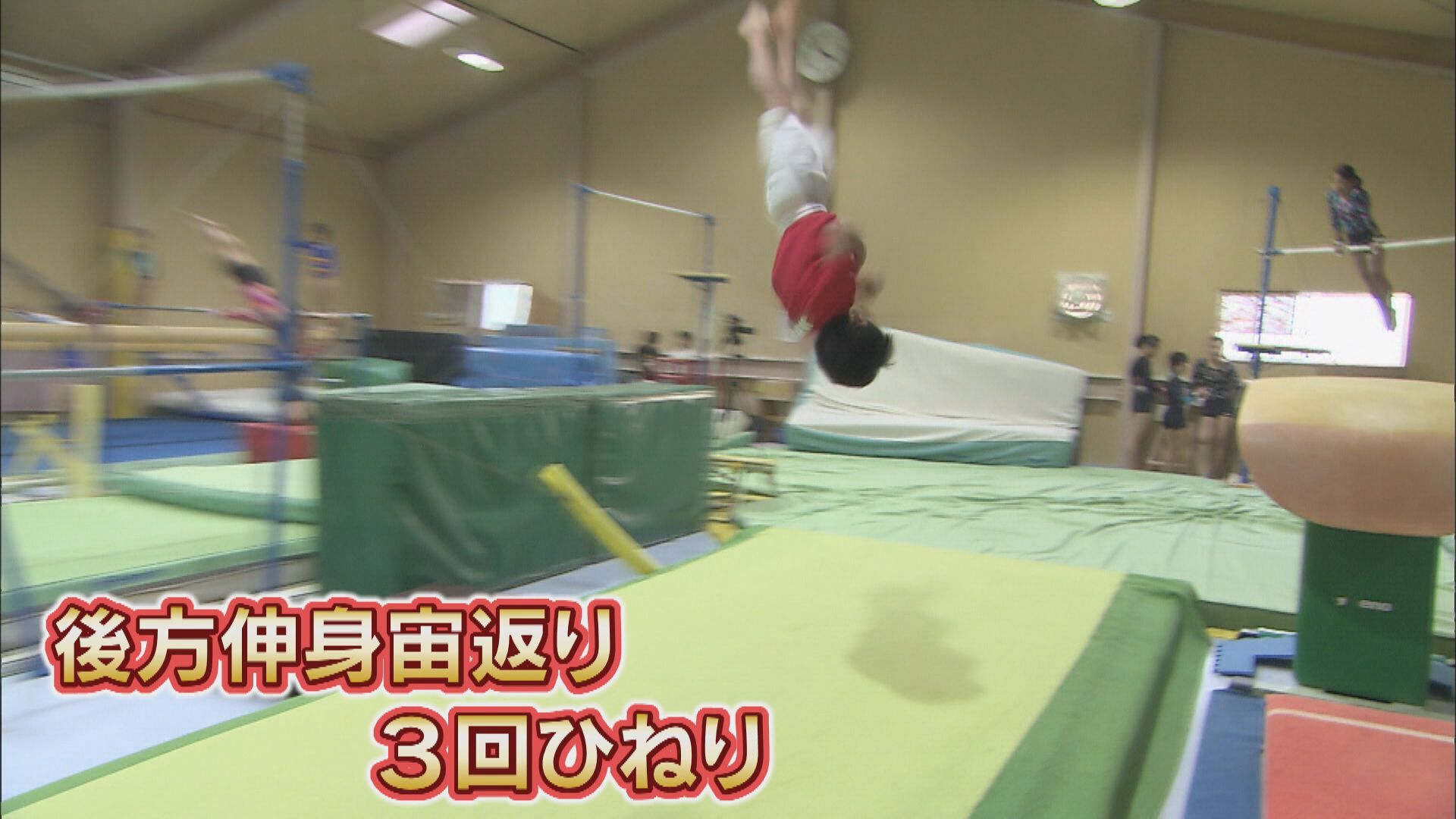 さらに、当時、練習で見せてくれた「スゴ技」が…床の「後方伸身宙返り 3回ひねり」。