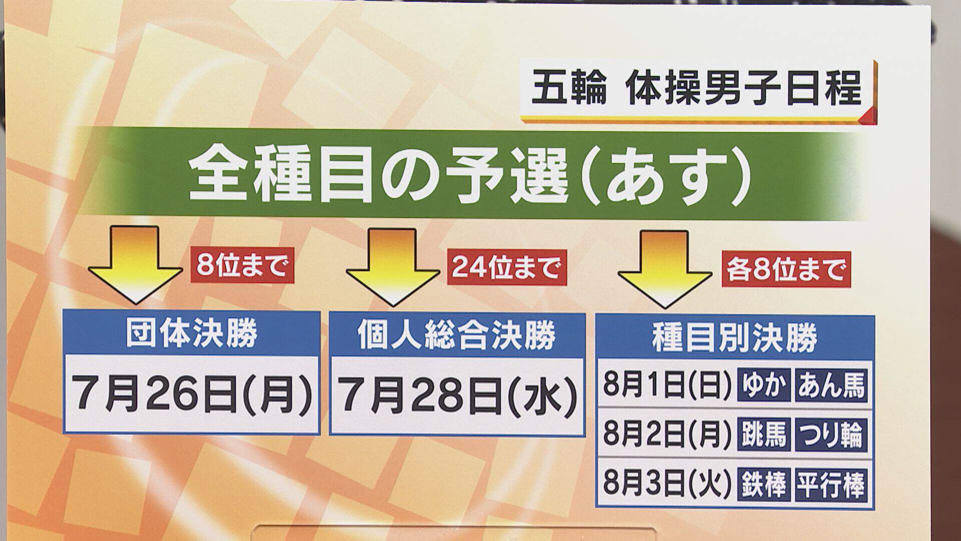 「ミヤネ屋の秘蔵っ子」北園選手が出場する、体操男子は7月24日から予選が始まります。