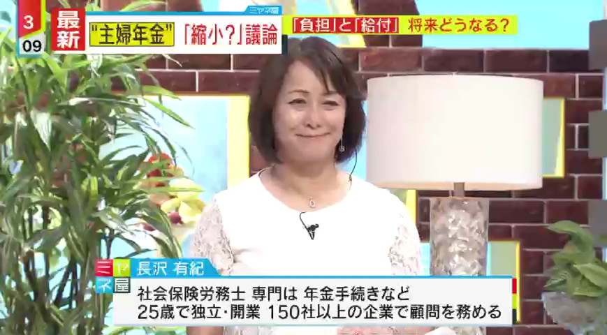 私たちの老後の生活を支える「年金」について、いま注目の議論が行われています。それは、「第3号被保険者制度」いわゆる“主婦年金”の見直しです。“主婦年金”とは、会社員や公務員の配偶者が、保険料を支払わなくても基礎年金が受け取れる制度で、その対象となるのは、厚生年金加入者の配偶者で、年齢が20歳以上60歳未満、年収は130万円未満の人などとなっています。今回の年金見直しで何が変わるのか、社会労務士の長沢有紀氏が解説します。