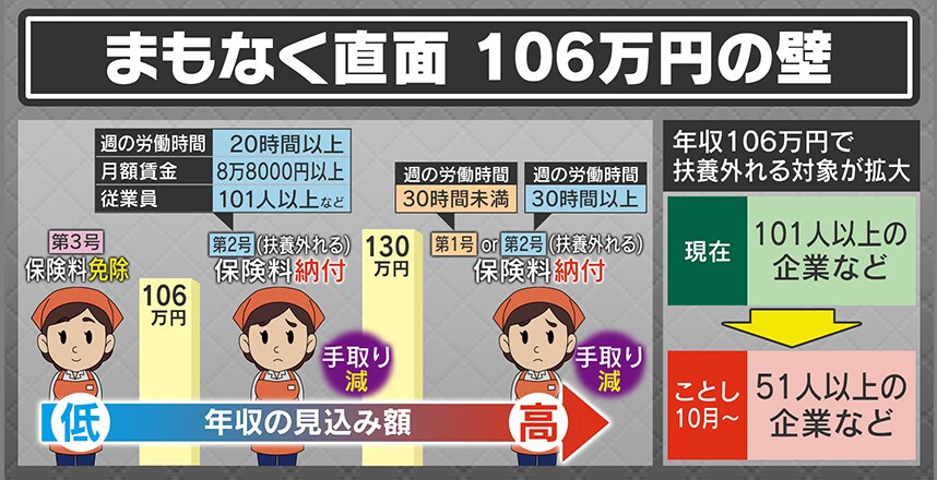 「厚生年金と健康保険などがセットですので、困ってしまいます。しかし良い点をいうと、106万円をちょっと超えるのなら、人手不足なのでもう(長い時間)働いちゃえという考えもあります」