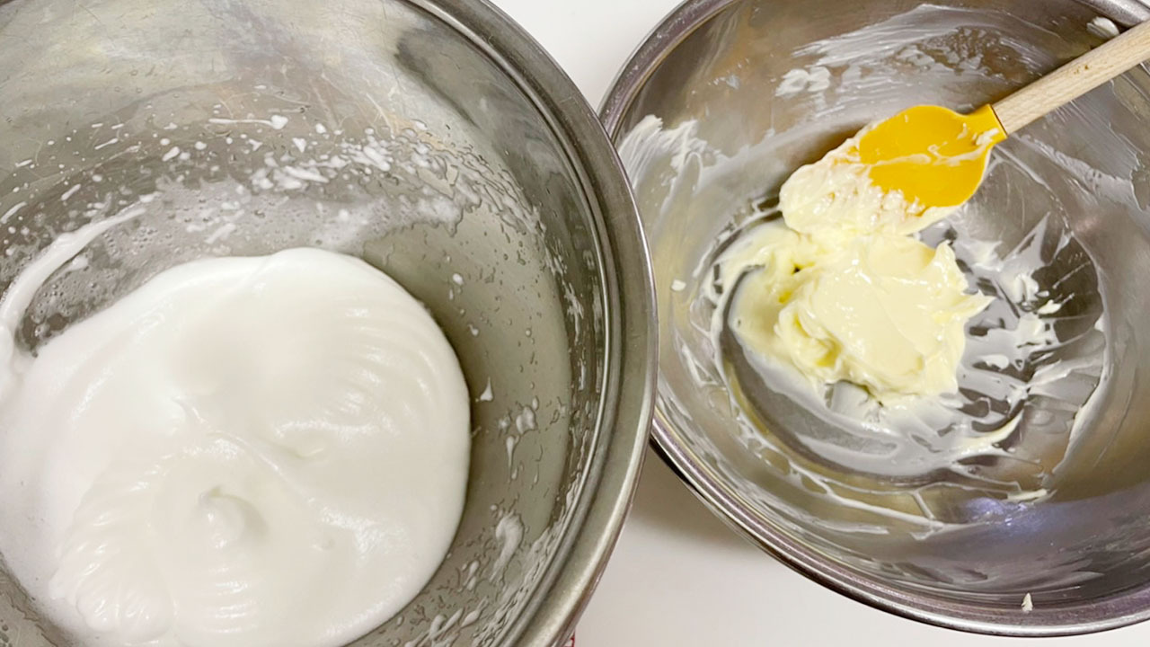 ③ ②にメレンゲを入れてさっくり混ぜ合わせる