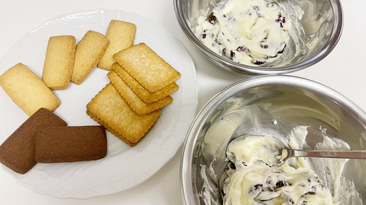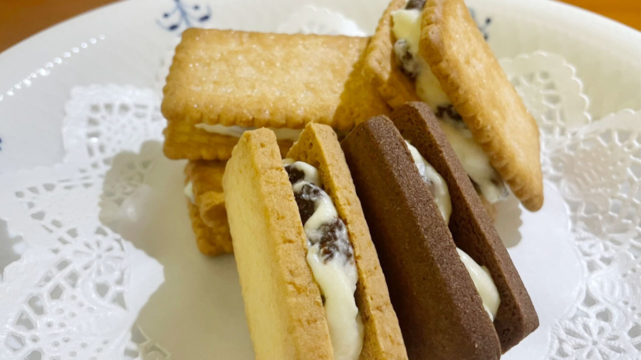 ⑤ 市販のサブレやクッキーにバタークリームを挟んで出来上がり