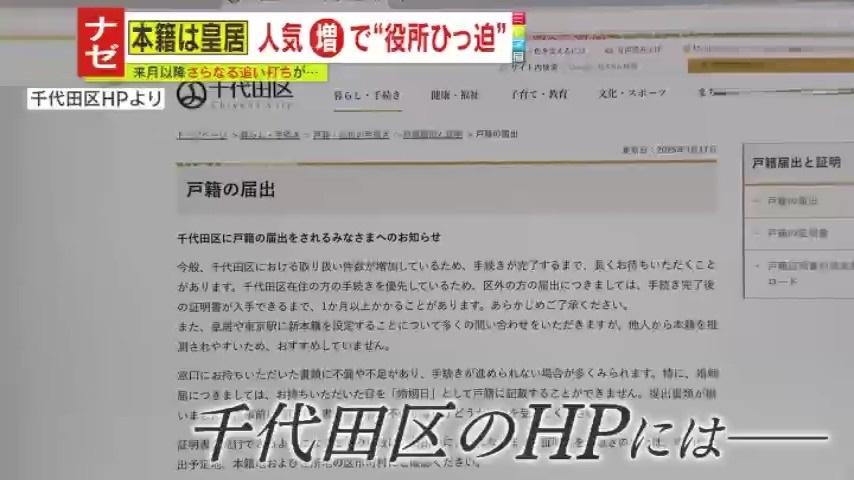 ■約3000人以上が皇居に本籍か 千代田区では“業務ひっ迫”