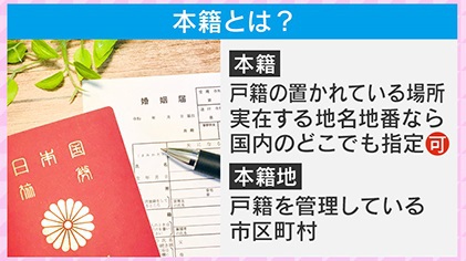 日本国民の出生・婚姻など身分関係を登録し、公に証明する戸籍。その戸籍を登録している住所を『本籍』といい、実在する住所であれば日本中のどこにでも置くことができ、自由に移すことが可能です(ちなみに『本籍地』とは、戸籍を管理している市区町村など自治体のこと)。